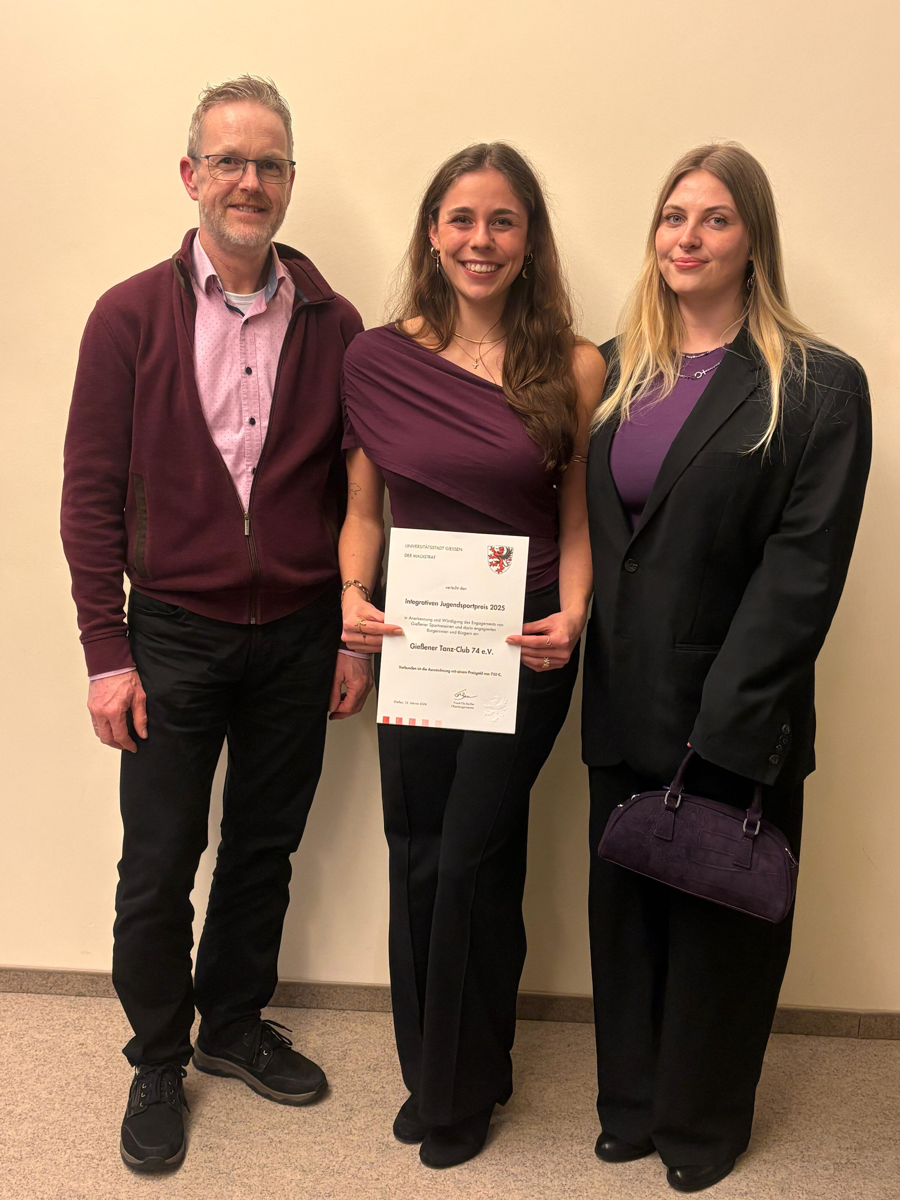 Der Gießener Tanzclub 74 e.V. wurde im Rathaus Gießen mit dem Integrativen Jugendsportpreis 2025 ausgezeichnet. Grundlage der Ehrung war das Engagement der Abteilung GalaxyCheer Gießen, die sich im Rahmen des „100 Hände Wochenendes“ der Sportjugend Hessen besonders für inklusive Jugendarbeit eingesetzt hat.