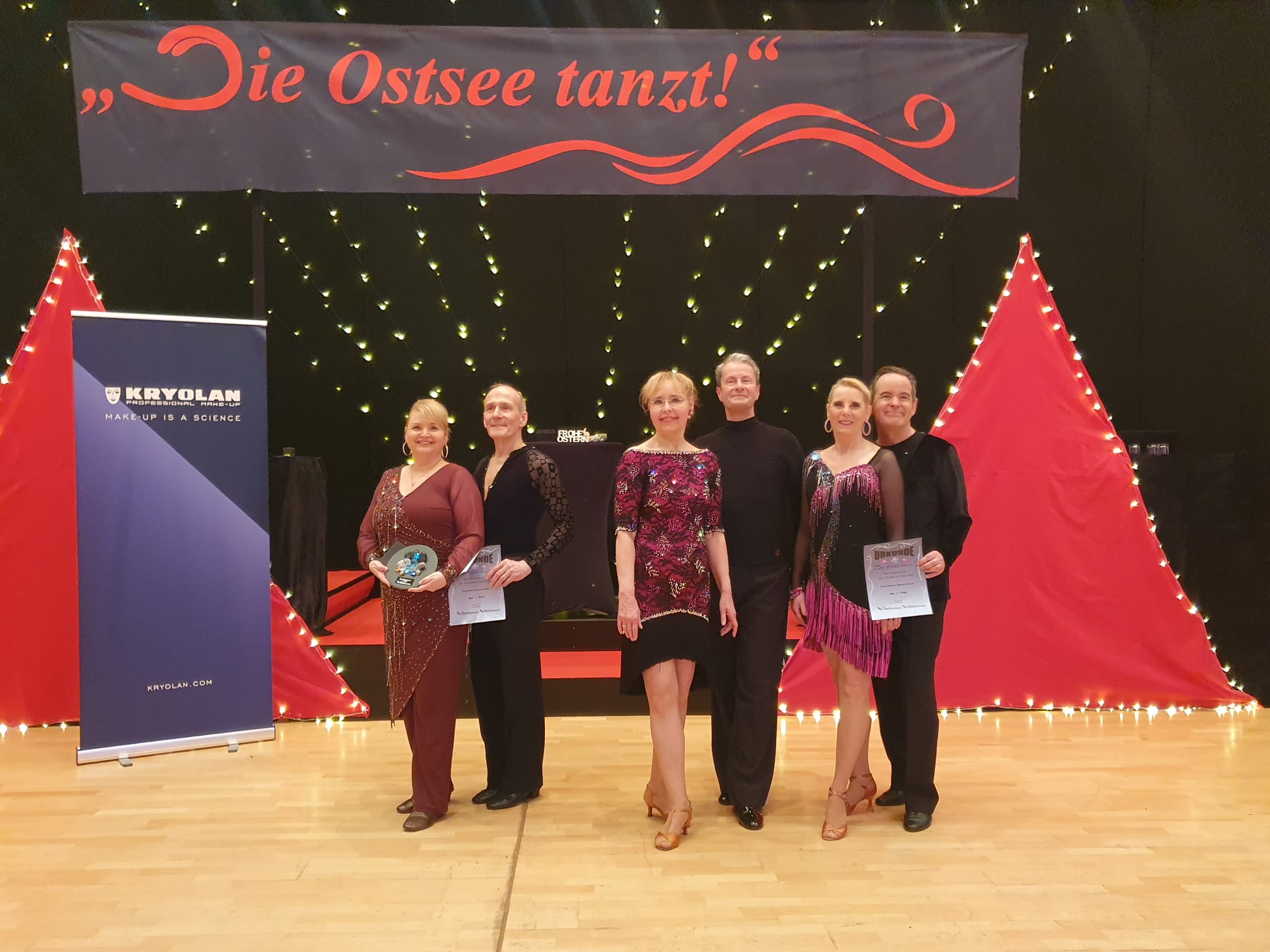 Am vergangen Wochenende gingen Jörg und Ramona Weber für den GTC in der Großveranstaltung „Die Ostsee tanzt“ in der Sen IV B Latein an den Start. Ausgetragen wurde das Turnier in Schönberg/Holm im „Festsaal im Ferienpark“ des „Tropischen Palmengartens“. Die traditionsreiche Veranstaltung erstreckte sich über drei Turniertage und bot erneut ein stimmungsvolles Umfeld für die Paare. Da in der Sen IV B Latein nur drei Paare gemeldet waren, begann das Turnier zunächst mit einer Sichtungsrunde. Für die Paare bedeutete das, von Beginn an konzentriert und präsent auf der Fläche zu sein. Jörg und Ramona nutzten diese Gelegenheit sehr gut und zeigten bereits in der Sichtungsrunde, dass sie an diesem Tag in hervorragender Form waren. Im Anschluss wurde direkt das Finale ausgetragen. Jörg und Ramona präsentierten sich dabei souverän und überzeugten das Wertungsgericht mit einer starken Leistung über alle fünf Tänze.